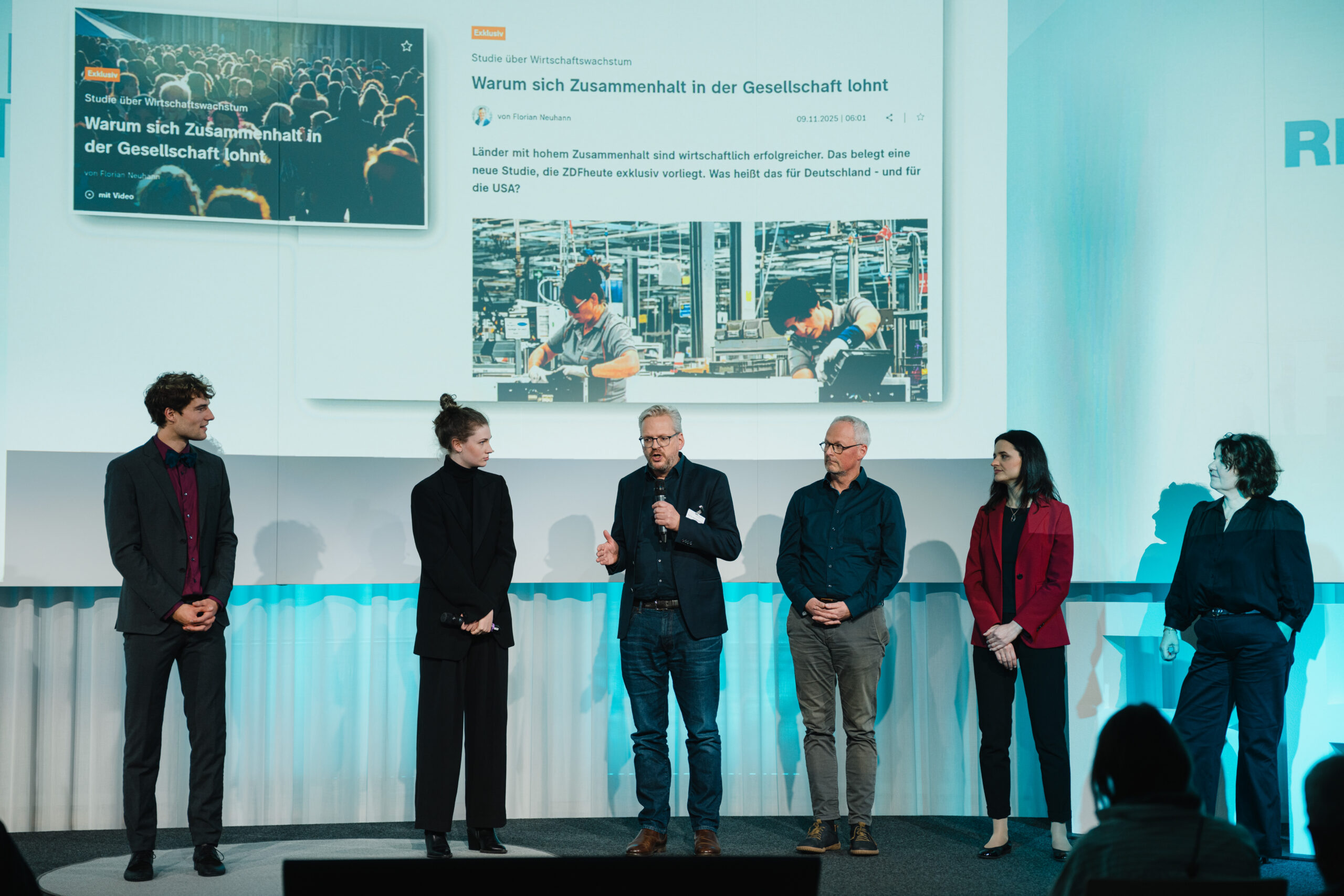 Gerechtigkeit ist nicht allein eine Frage der Rechtsprechung – wir beurteilen meist intuitiv, was fair oder unfair ist. Und beim Bauchgefühl bleibt es nicht: Denn wahrgenommene Gerechtigkeit fördert den sozialen Zusammenhalt und die Motivation, sich für das Gemeinwesen zu engagieren, sagte der Wirtschaftsethiker Nils Goldschmidt in seinem Talk. Er hält das Streben nach gesellschaftlicher Gerechtigkeit nicht für Sozialromantik, sondern für ökonomische Klugheit. Auch in Unternehmen führe Fairness zu mehr wirtschaftlichem Erfolg. Unverzichtbar dafür seien klare Regeln, transparente Entscheidungsstrukturen und ein Klima des Respekts, erklärte der Volkswirt Frank Müller.